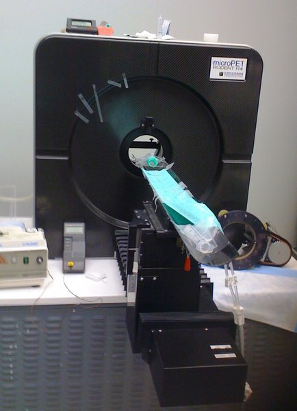 Is a high-resolution positron emission tomography (PET) technology designed for imaging rodent or small laboratory animals. A microPET Rodent R4 from Concorde Microsystems, Inc. is available at the PET centre. Two MicroPET scanners are available at the centre. As for PET and PET/CT it is possible to sample series of arterial blood for the establishment of the time-activity curves (CAT) while scanning. Samples are used for kinetic modeling of the tracer substance distribution. Blood samples can also be used for metabolite analysis.